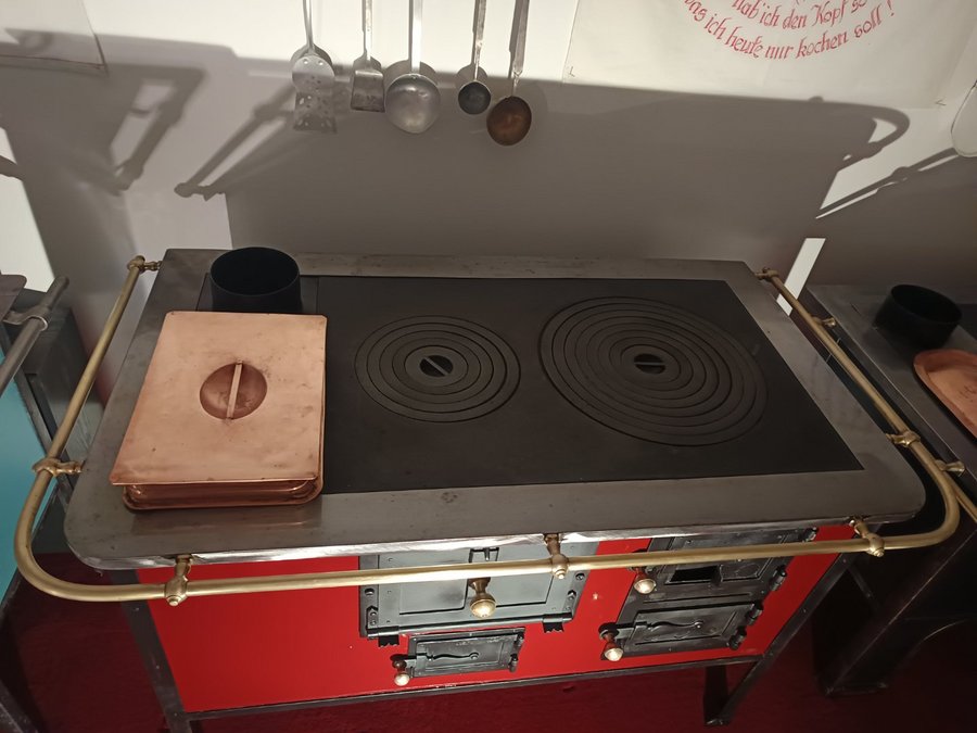 Forno in acciaio inox, bollitore d'acqua in rame.
